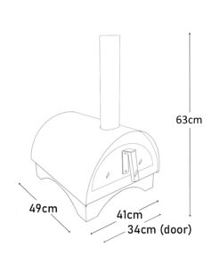 Den leveres med dør, pizzaspade, skorstein og askeskrape.